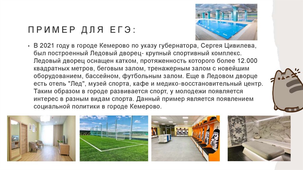 оборудованием, бассейном, футбольным залом. Еще в Ледовом дворце