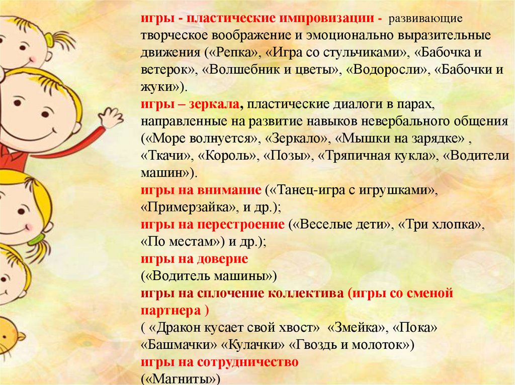 игры - пластические импровизации - развивающиетворческое воображение и эмоционально выразительные