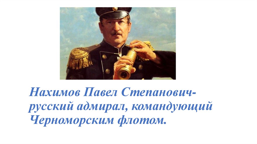 Нахимов Павел Степановичрусский адмирал, командующийЧерноморским флотом.