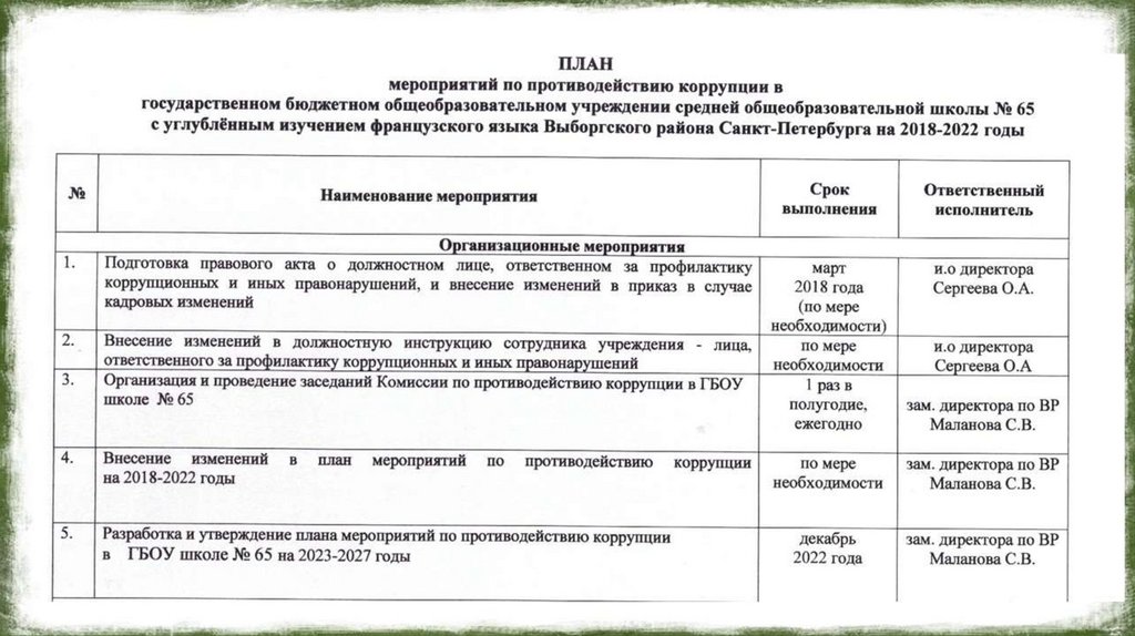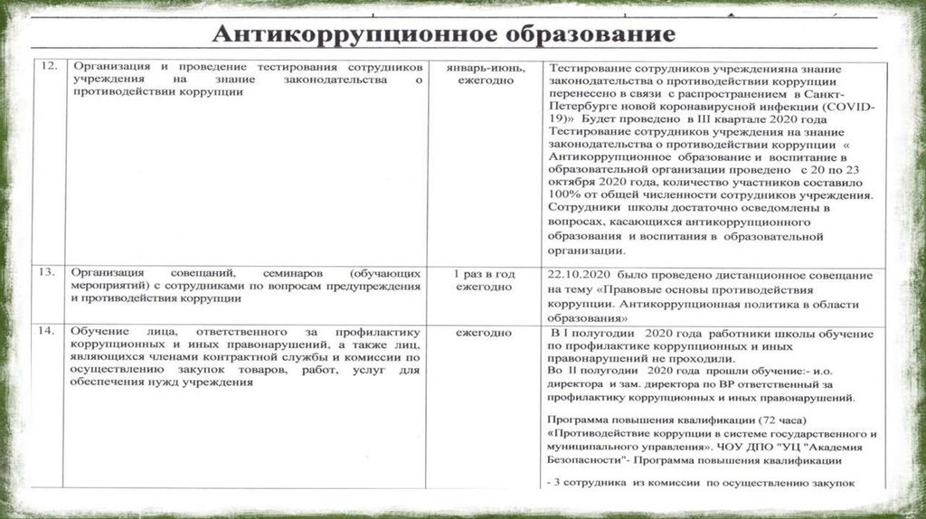 Противодействие коррупции в ОУ