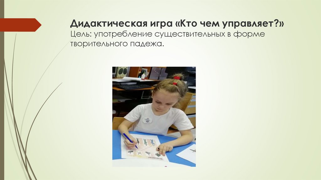 Дидактическая игра «Кто чем управляет?»Цель: употребление существительных в форме