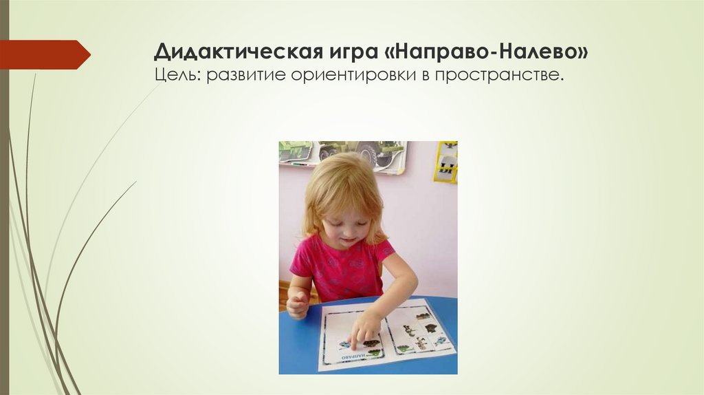 Дидактическая игра «Направо-Налево»Цель: развитие ориентировки в пространстве.