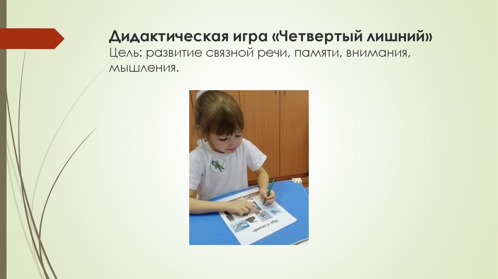 Дидактическая игра «Четвертый лишний»Цель: развитие связной речи, памяти, внимания,