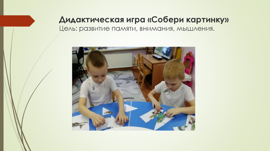 Дидактическая игра «Собери картинку»Цель: развитие памяти, внимания, мышления.