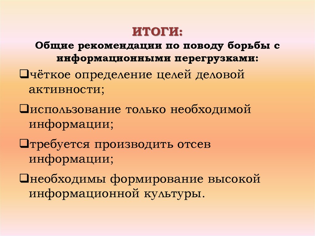 ИТОГИ:Общие рекомендации по поводу борьбы с
