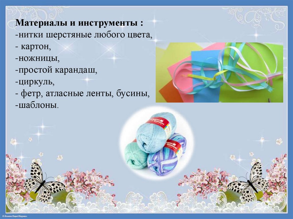 Материалы и инструменты :-нитки шерстяные любого цвета,