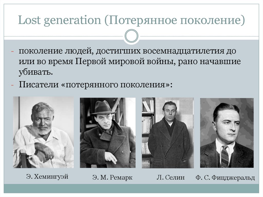 - Писатели «потерянного поколения»: