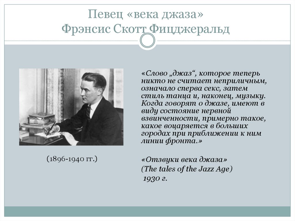 Певец «века джаза»Фрэнсис Скотт Фицджеральд