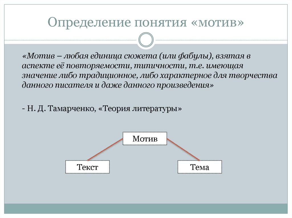 Определение понятия «мотив»«Мотив – любая единица сюжета (или фабулы), взятая в