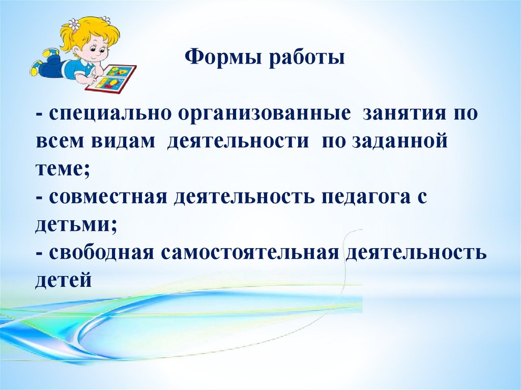 Формы работы- специально организованные занятия по