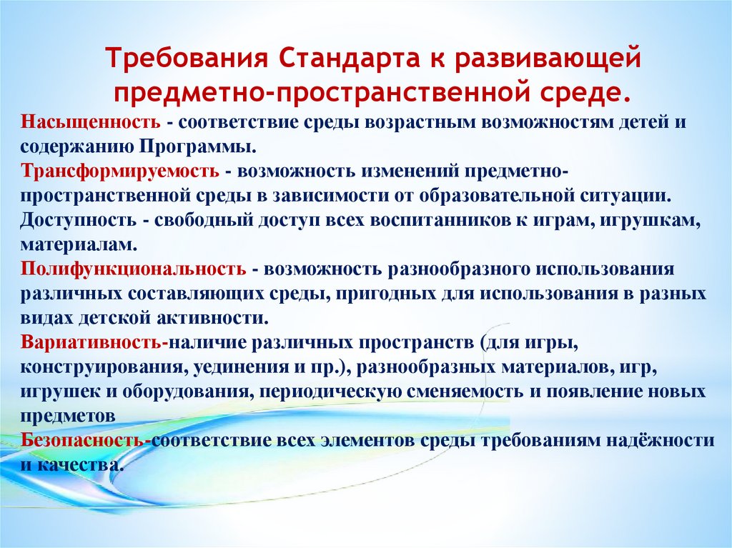 Требования Стандарта к развивающейпредметно-пространственной среде.