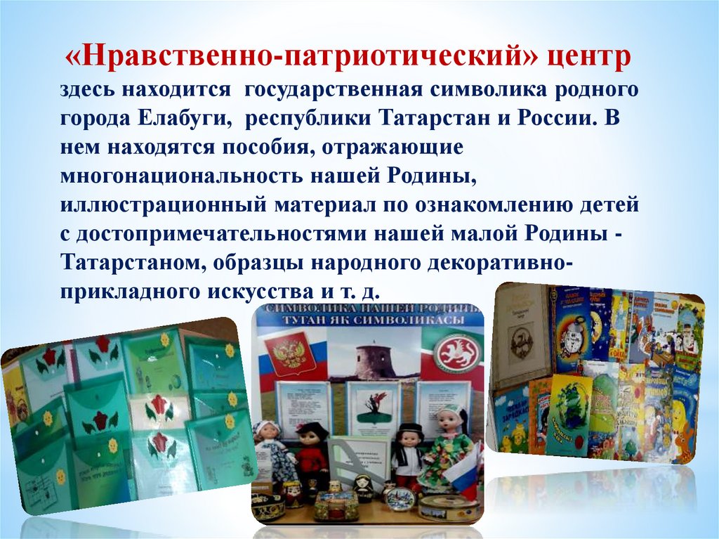 с достопримечательностями нашей малой Родины Татарстаном, образцы народного декоративноприкладного искусства и т. д.