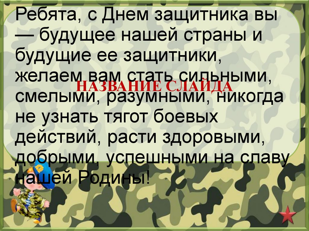 Ребята, с Днем защитника вы— будущее нашей страны и