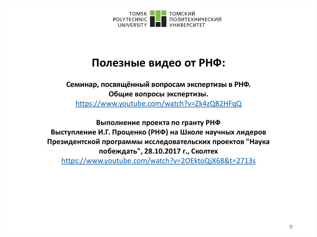 Полезные видео от РНФ:Семинар, посвящённый вопросам экспертизы в РНФ.