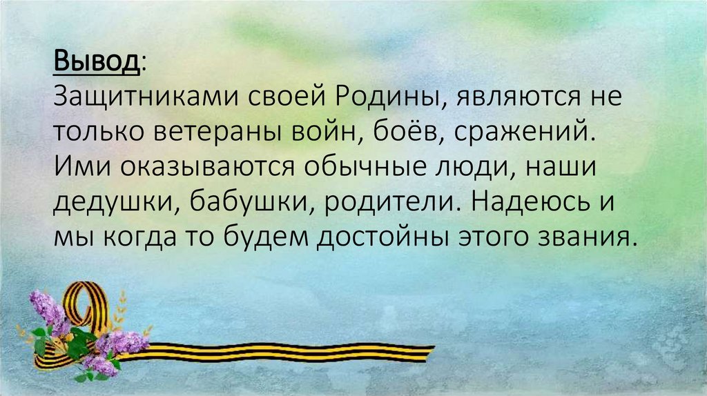 Вывод:Защитниками своей Родины, являются не
