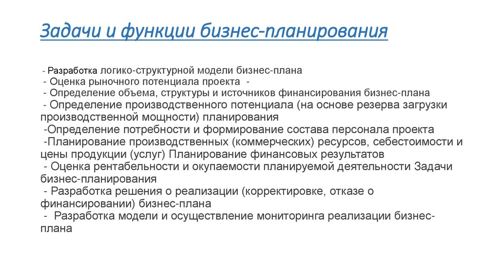 Задачи и функции бизнес-планирования- Разработка логико-структурной модели бизнес-плана