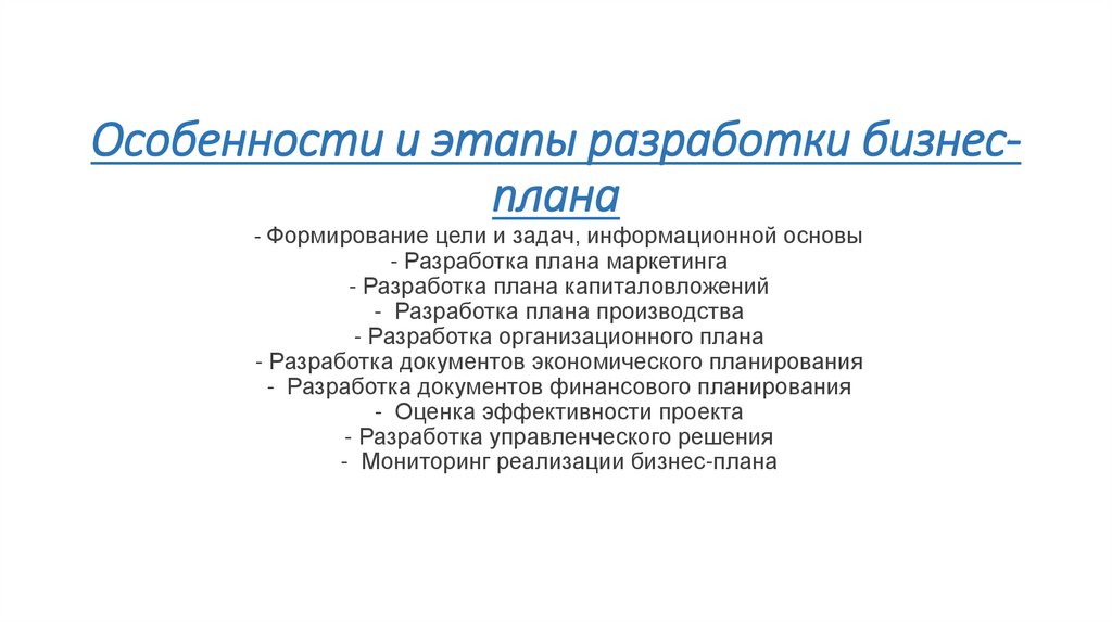 Особенности и этапы разработки бизнесплана- Формирование цели и задач, информационной основы