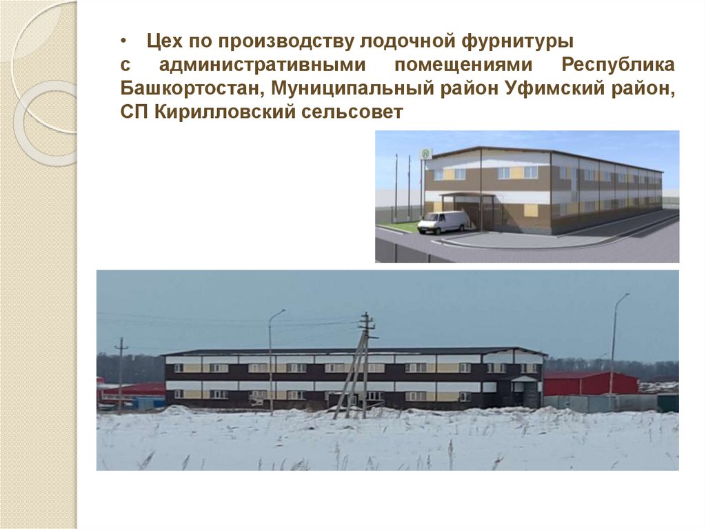 • Цех по производству лодочной фурнитурыс административными помещениями Республика