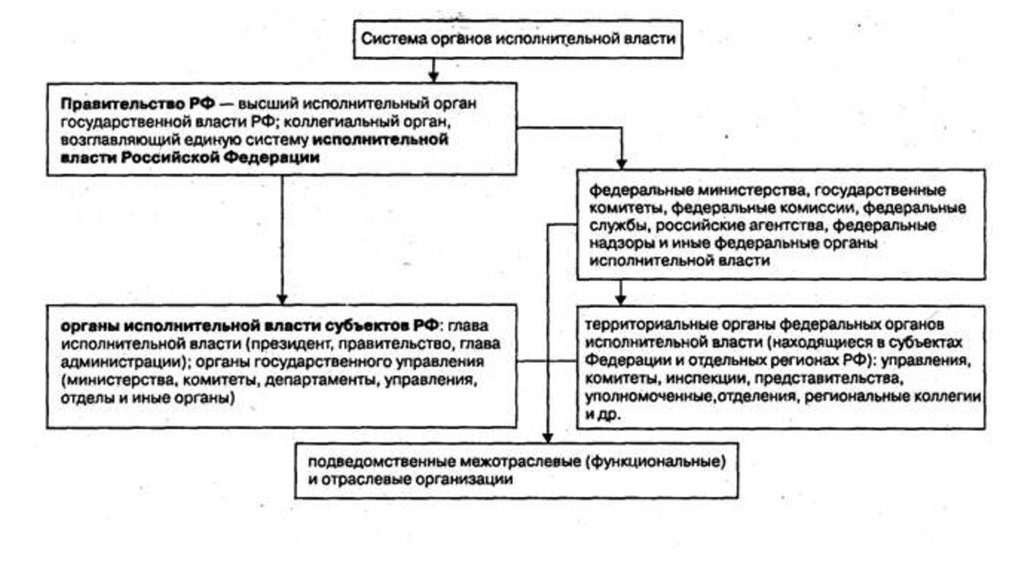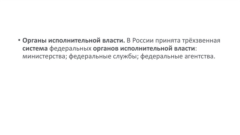 • Органы исполнительной власти. В России принята трёхзвеннаясистема федеральных органов исполнительной власти: