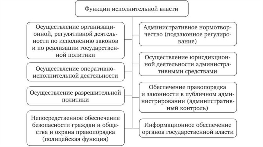 имуществом и правоприменительные функции, за исключением функций по контролю и надзору. В пределах своей компетенции издаёт индивидуальные правовые акты, ведёт реестры,