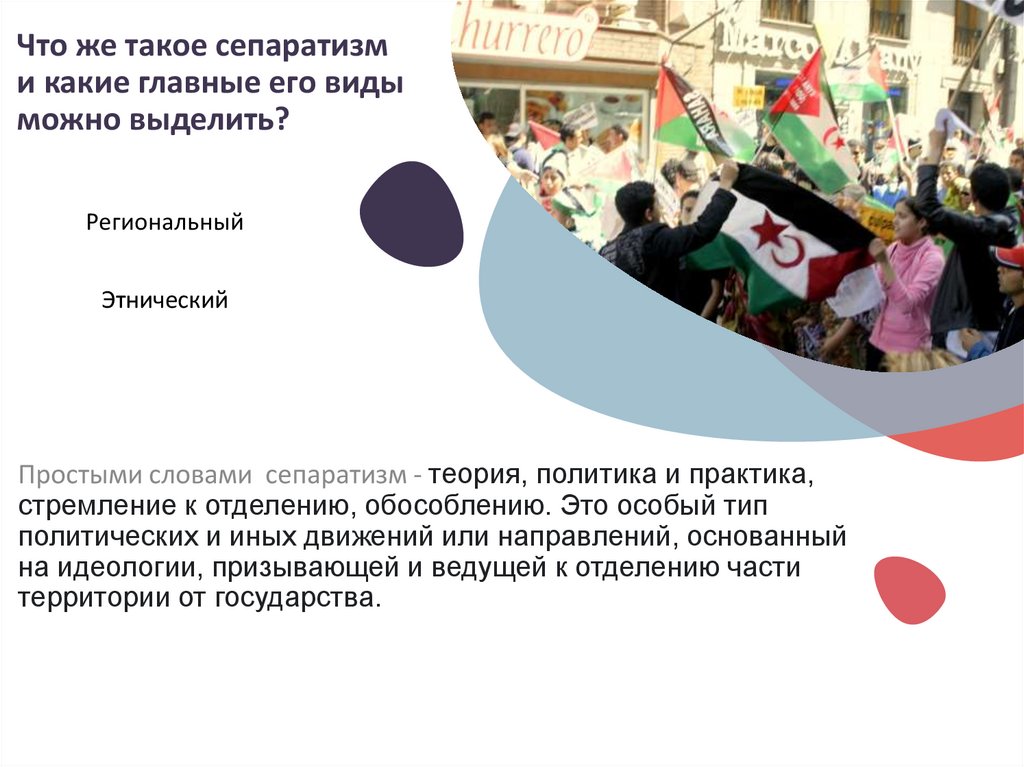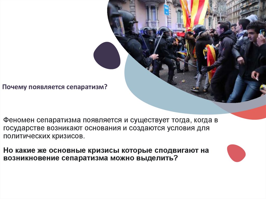 Почему появляется сепаратизм?Феномен сепаратизма появляется и существует тогда, когда в