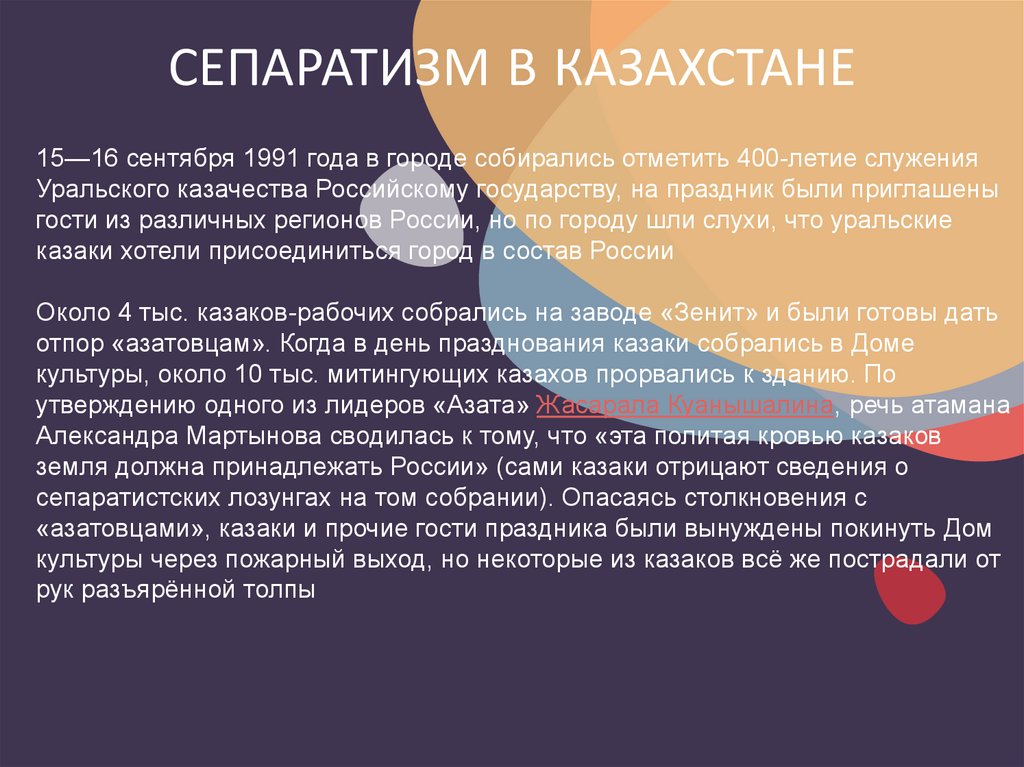 СЕПАРАТИЗМ В КАЗАХСТАНЕ14.