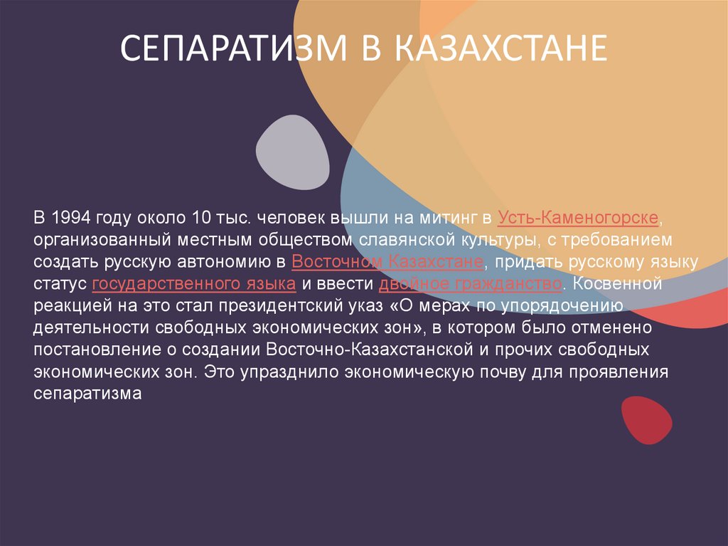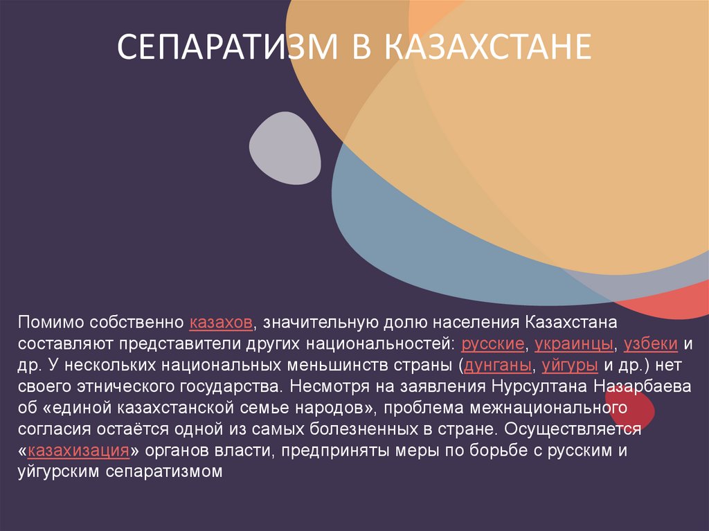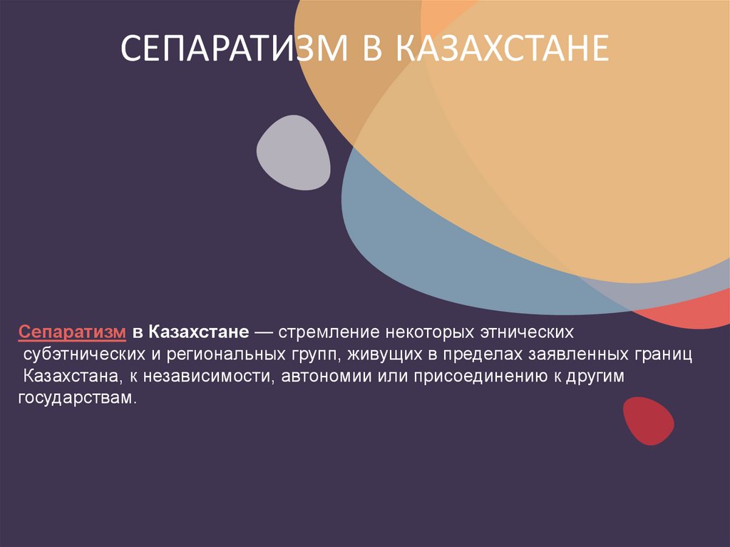 СЕПАРАТИЗМ В КАЗАХСТАНЕСепаратизм в Казахстане — стремление некоторых этнических