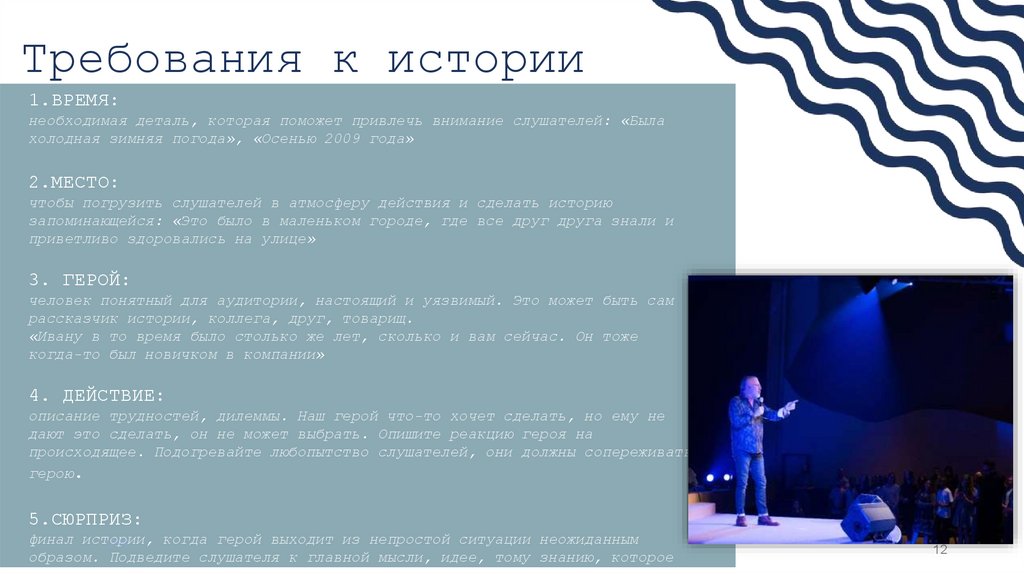 образом. Подведите слушателя к главной мысли, идее, тому знанию, которое