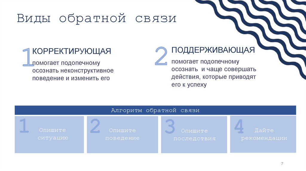 Виды обратной связиКОРРЕКТИРУЮЩАЯ