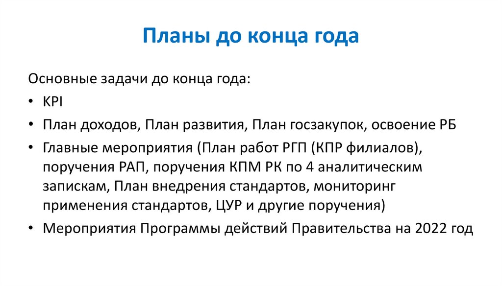 • Главные мероприятия (План работ РГП (КПР филиалов),