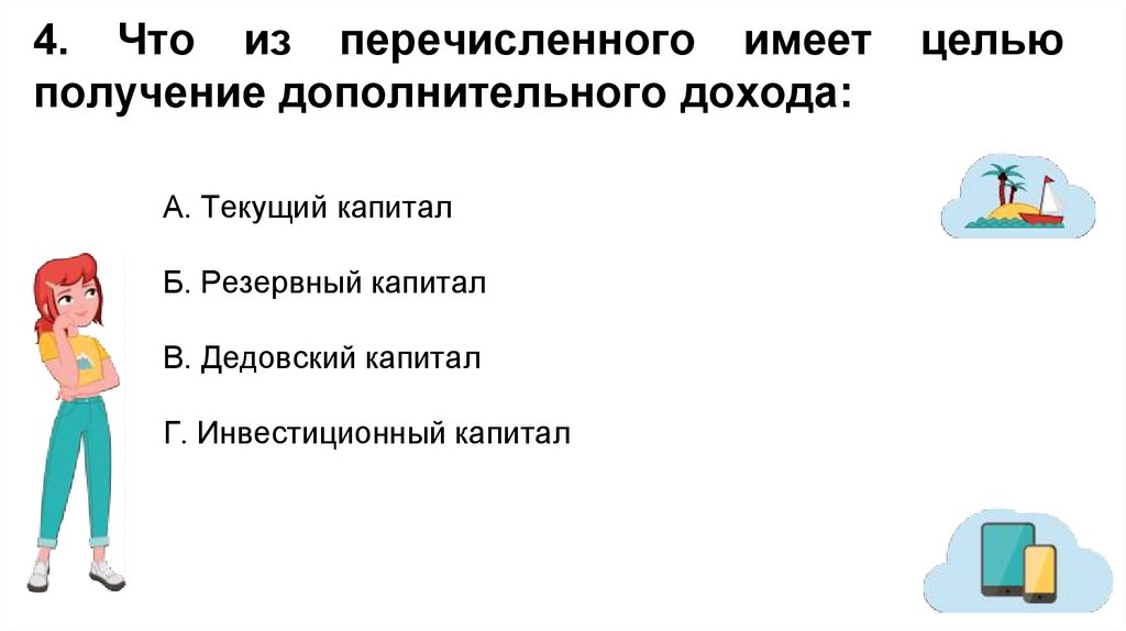4. Что из перечисленного имеетполучение дополнительного дохода:
