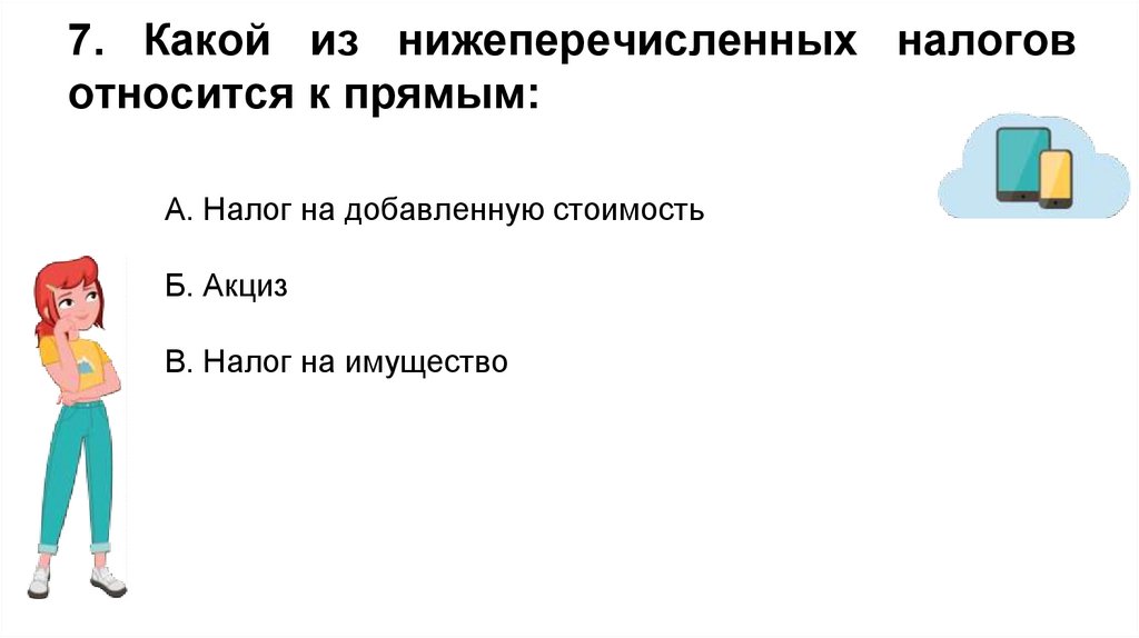 7. Какой из нижеперечисленных налоговотносится к прямым:
