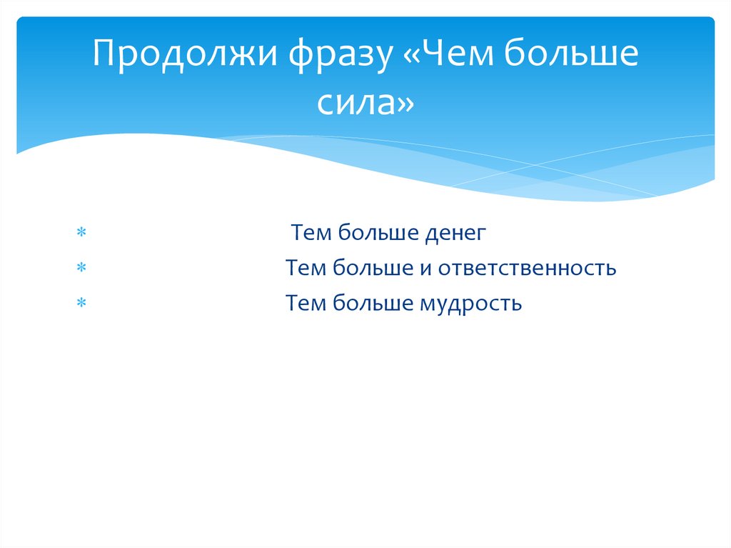 Продолжи фразу «Чем большесила»