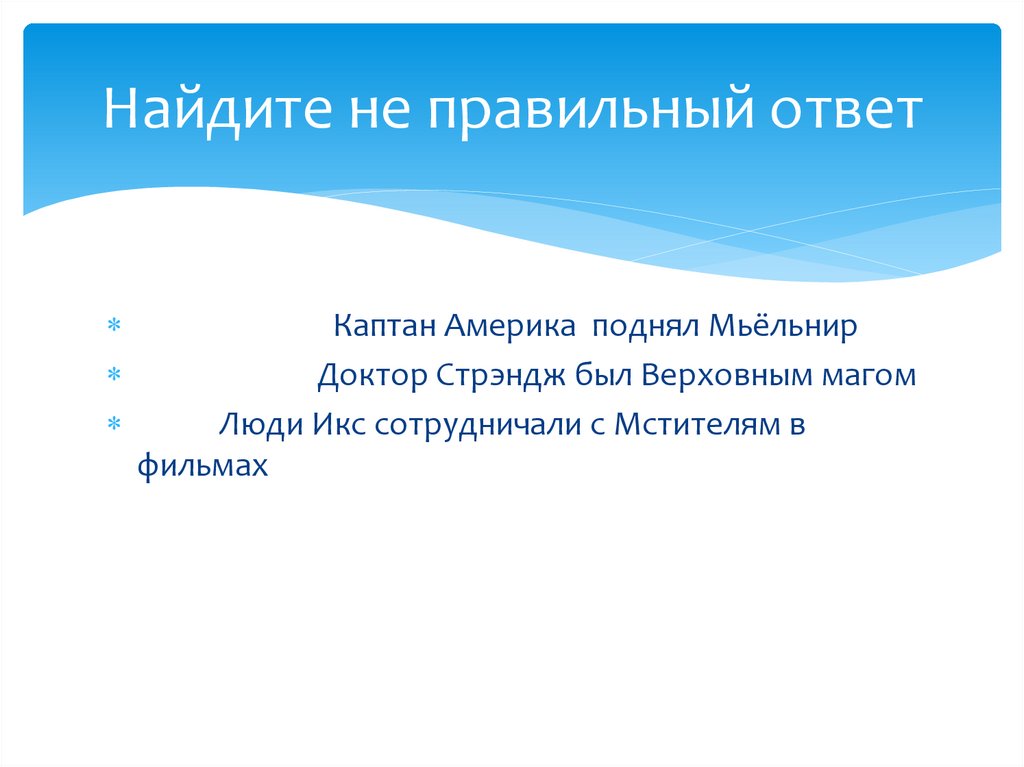 Найдите не правильный ответКаптан Америка поднял Мьёльнир