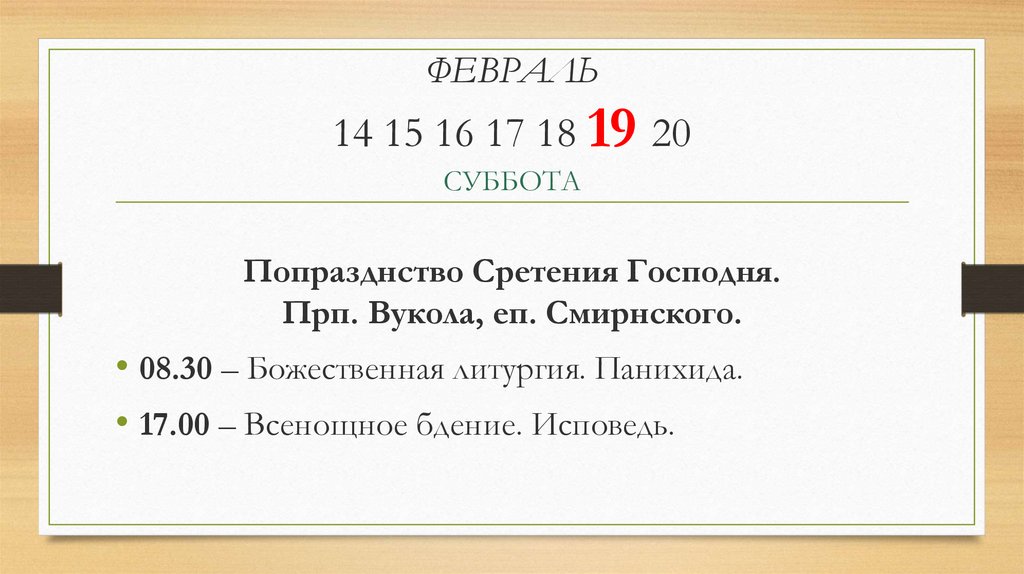 ФЕВРАЛЬ14 15 16 17 18 19 20