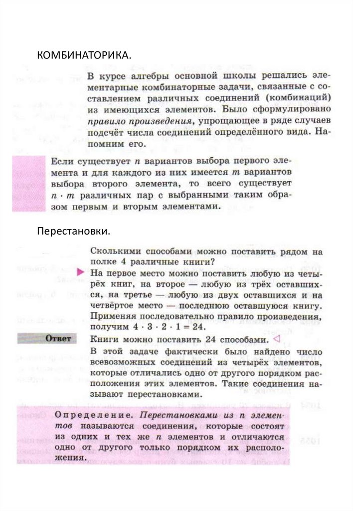 Векторы и координаты. Решение задач. Основные понятия комбинаторики