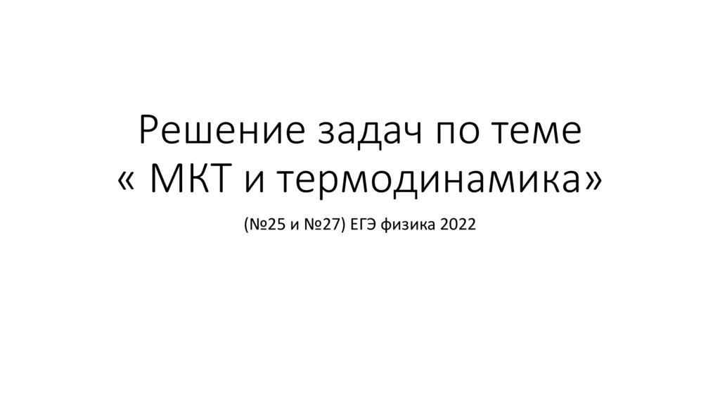Решение задач по МКТ и термодинамики в ЕГЭ