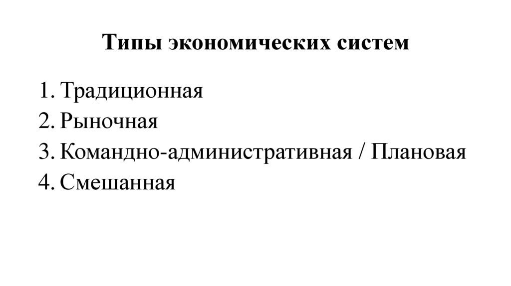 Типы экономических систем1. Традиционная