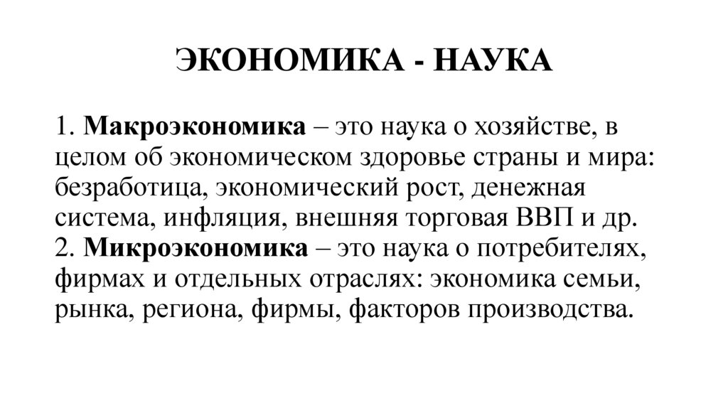 ЭКОНОМИКА - НАУКА1. Макроэкономика – это наука о хозяйстве, в