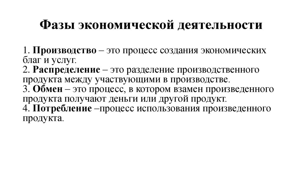 Фазы экономической деятельности1. Производство – это процесс создания экономических