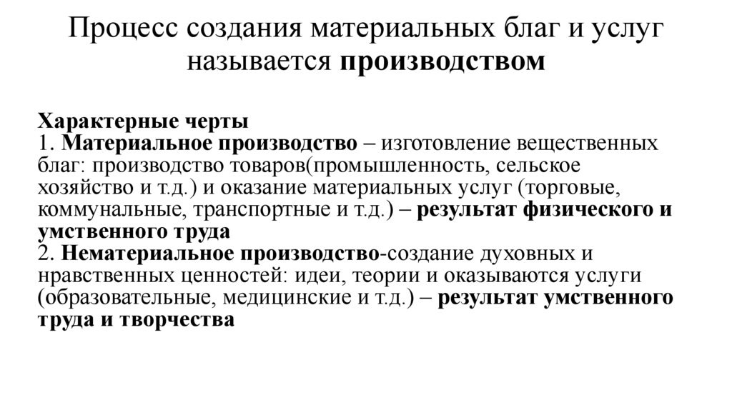 1. Материальное производство – изготовление вещественных