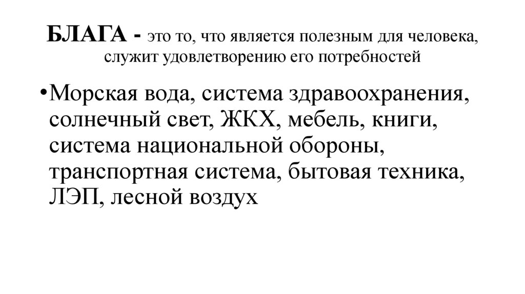 БЛАГА - это то, что является полезным для человека,служит удовлетворению его потребностей