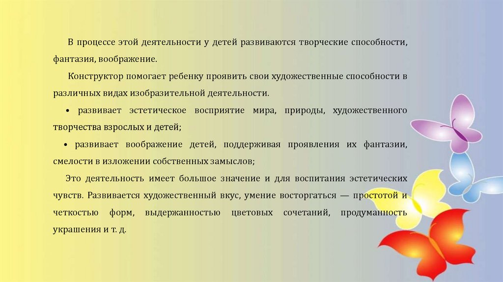 В процессе этой деятельности у детей развиваются творческие способности,фантазия, воображение.