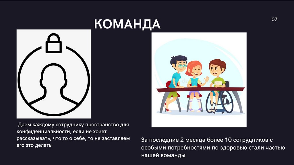 КОМАНДАДаем каждому сотруднику пространство для