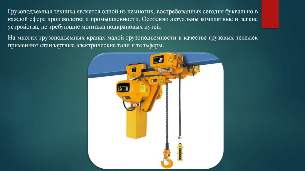 Тельфер стал одним из самых востребованных видов грузоподъемного оборудования, без которогосложно представить промышленные предприятия, склады и ремонтные мастерские. Однако, как и