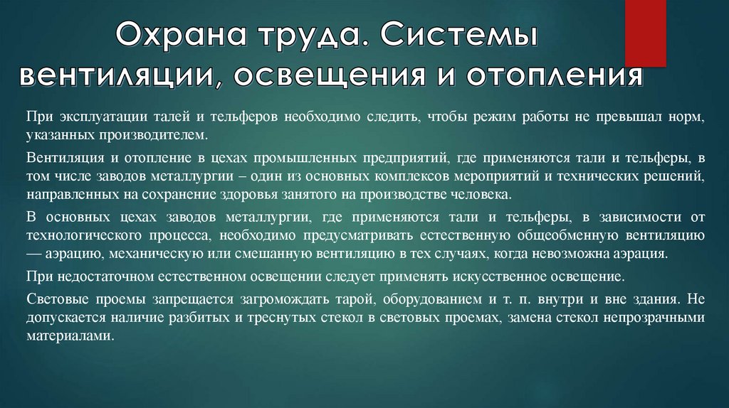 Вентиляция и отопление в цехах промышленных предприятий, где применяются тали и тельферы, в