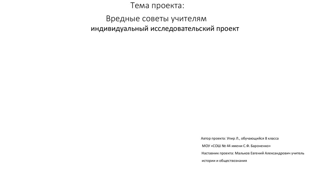 Тема проекта:Вредные советы учителям