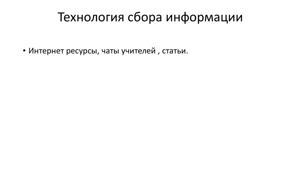 Технология сбора информации• Интернет ресурсы, чаты учителей , статьи.