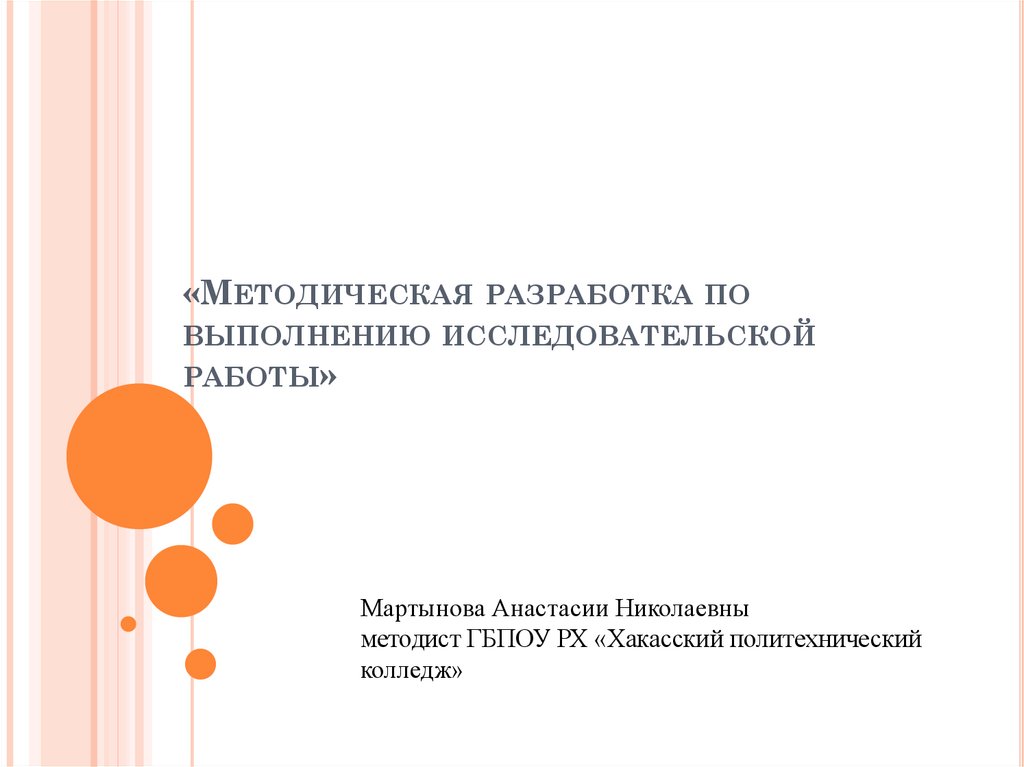 «МЕТОДИЧЕСКАЯ РАЗРАБОТКА ПОВЫПОЛНЕНИЮ ИССЛЕДОВАТЕЛЬСКОЙ