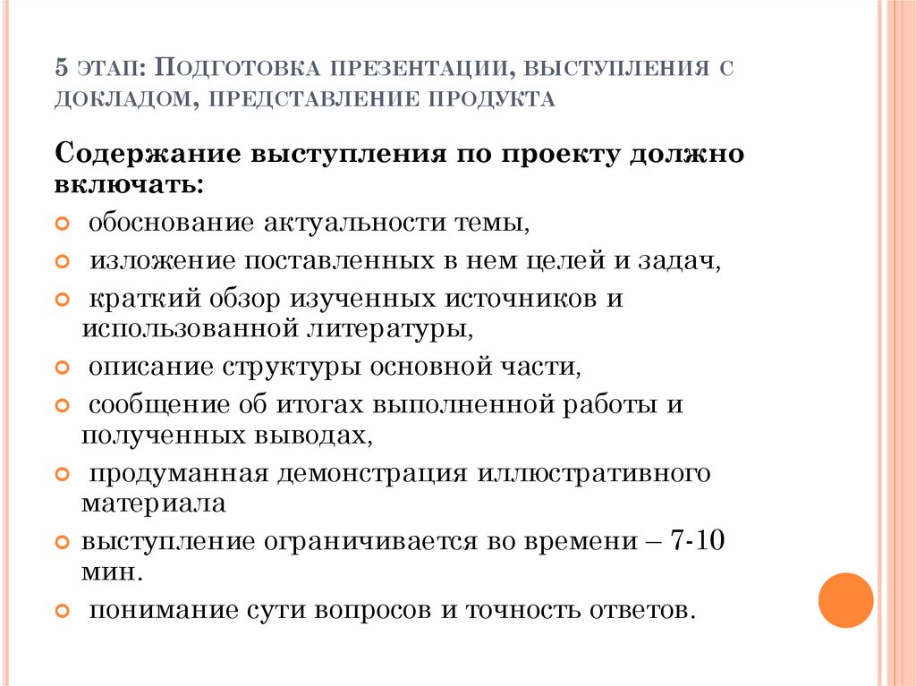 5 ЭТАП: ПОДГОТОВКА ПРЕЗЕНТАЦИИ, ВЫСТУПЛЕНИЯДОКЛАДОМ, ПРЕДСТАВЛЕНИЕ ПРОДУКТА